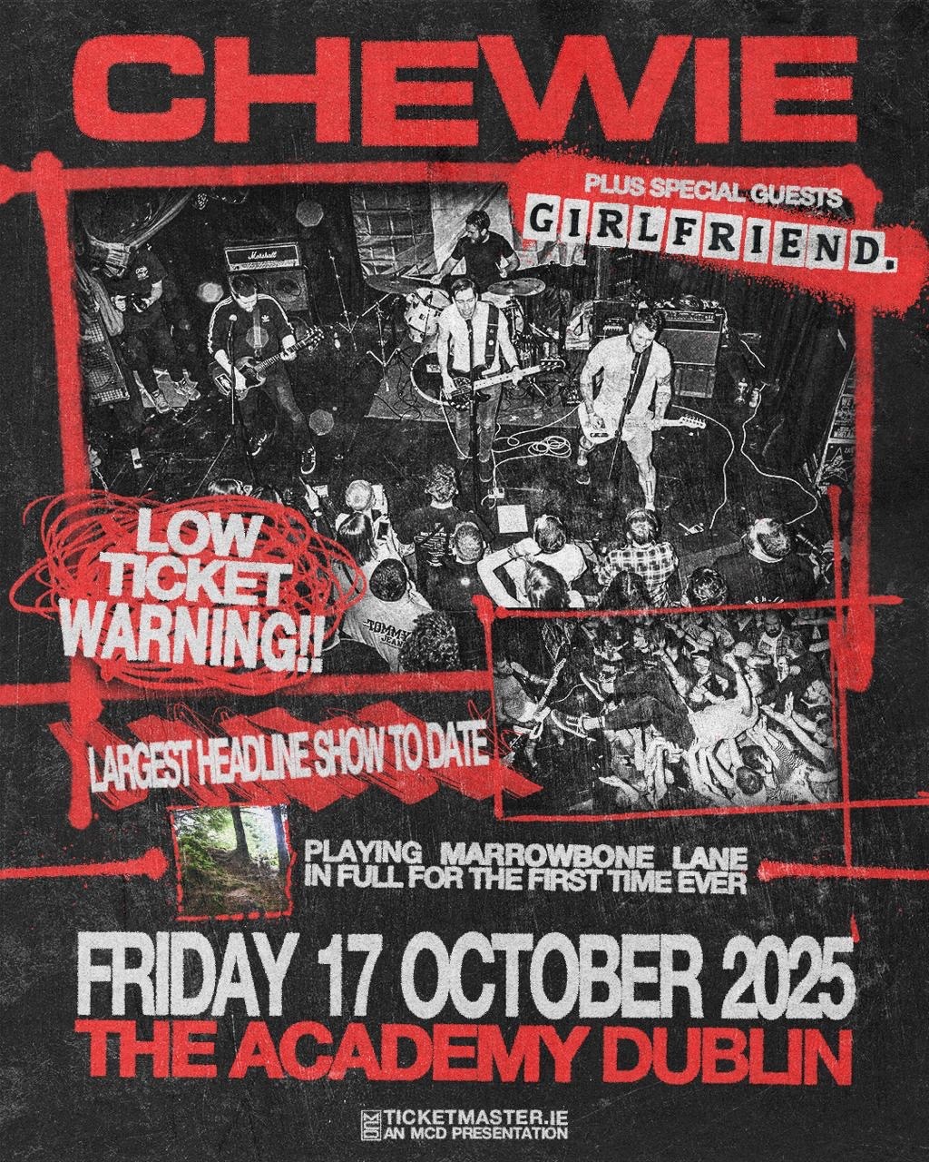 Chewie play their biggest Dublin gig to date, performing their 2013 album “Marrowbone Lane” in full. Support from girlfriend., who will be showcasing material from their newly recorded upcoming second album.