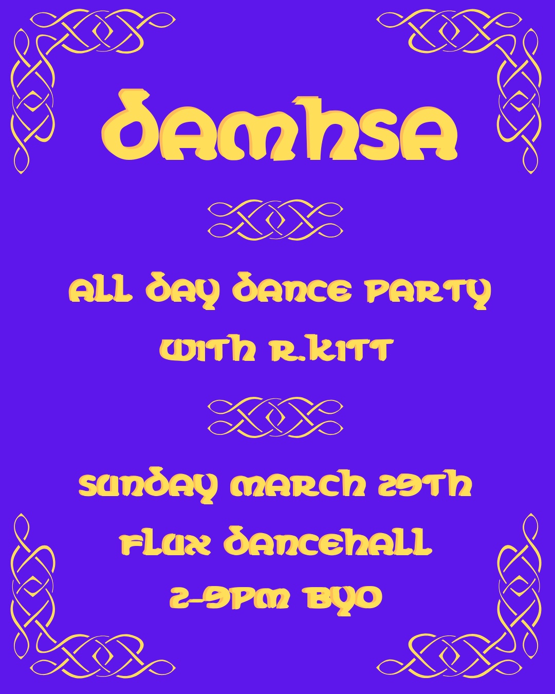 A Sunday daytime party in a community arts venue in the heart of Dublin city. Damhsa is a party focused on dancing! R.Kitt will once again be going deep into his collection with a marathon 7 hour set. Pop in for a few hours and get your fix, or stay for the whole journey!