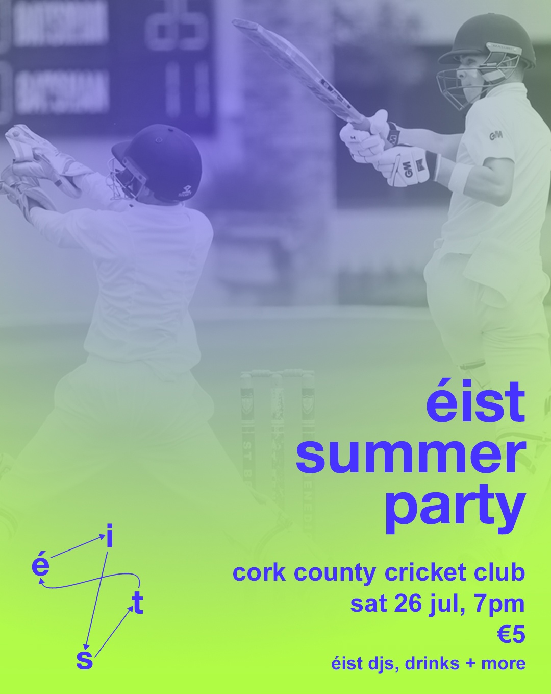 It is with great excitement that we announce the ☀️ éist summer party ☀️ on the evening of Saturday 26th July, in the Cork County Cricket Club on Mardyke Walk! 🦗