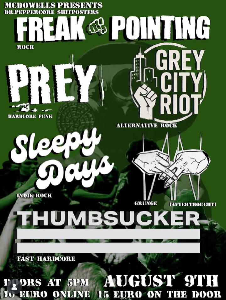Freak Pointing, Prey, Grey City Riot, Sleepy Days, Afterthought, Thumbsucker
