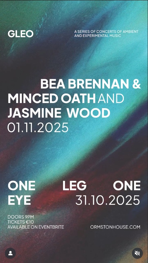 This performance forms part of Gleo, our programme of experimental and ambient music. Marking Samhain, the concert series invites the public to Ormston House to gather and listen together. The word ‘gleo’, originating from the West of Ireland, refers to the sound of the sea when it is loud and ominous, its tumult and texture akin to man-made or mechanical noise, a sound that foretells bad weather.