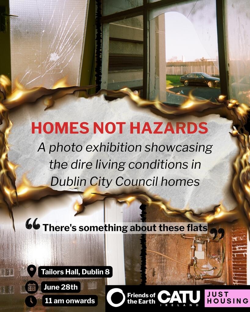 Friends of the Earth, Community Action Tenants Union (CATU) and the Just Housing research project in Maynooth University are collaboratively launching a photo exhibition ‘Homes not Hazards: ‘There's something about these flats’ in Tailors Hall, Dublin 8 on June 28th, from 11am onwards. This is a powerful new exhibition that brings to light the housing conditions and lived experiences of tenants in local authority homes in Cromcastle Court in Coolock and Emmet Buildings in Dublin 8. It showcases photos taken by tenants in local authority homes in Coolock and Dublin 8, alongside excerpts from interviews with them. We, at Friends of the Earth, will also launch our ‘Warm Homes for All: Tenants for Climate Justice’ campaign’s toolkit and pledge.