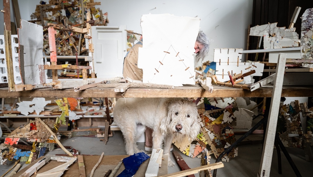 O’Leary’s constructions respond to what she describes as a “flipbook of faith, money, possibility, belief, absurdity, disappointment, and the ethical collapse of so many systems that never worked for so many.” At The Dock, this sensibility is sharpened through what might be termed a form of studio archaeology: earlier works are disassembled into rudimentary slabs and reconstituted, transforming failure and obsolescence into fertile ground. Grids buckle, supports tilt, surfaces carry the memory of prior use. Fragility and resilience coexist in what the artist has described as an “ecology of form.”